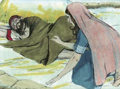 “When Boaz has finished eating, he will lie down under the stars and go happily asleep. You slip to his feet, uncover them, and lie there. When he awakes, he will tell you what to do.”